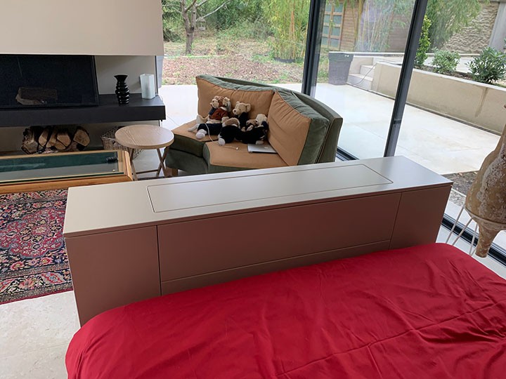 Possibilité de choisir le sens de la sortie de l’écran (meuble positionné contre un lit ou contre un mur).